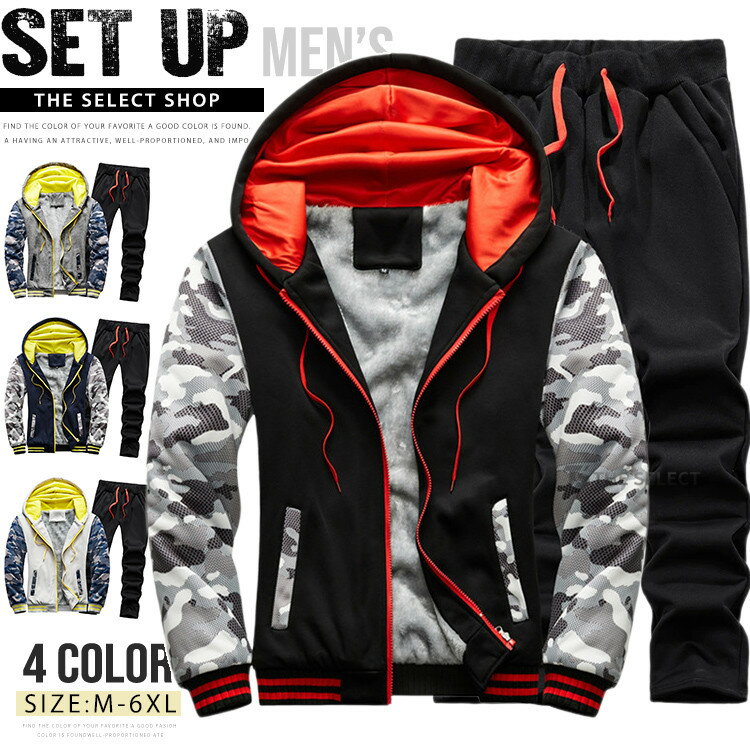 上下セット メンズ ジャージ スウェット 上下 セットアップ スポーツ 迷彩 カモフラ 長袖 ジップ・・・