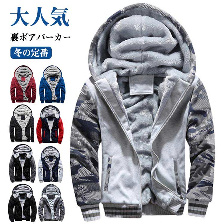 裏ボア パーカー ジップ プルジップ ポケット付き 防寒 裏起毛 ジップアップパーカー カジュアル ・・・