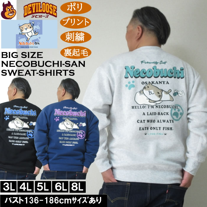 大きいサイズ メンズ NECOBUCHI-SAN 裏起毛 クルーネック トレーナー(メーカー取寄)ポ・・・