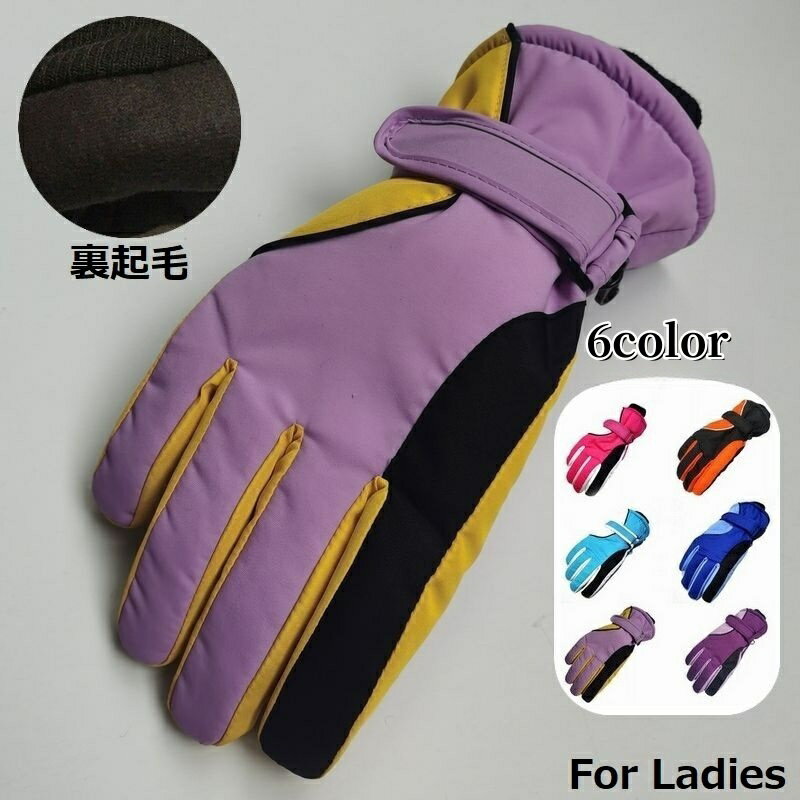 送料無料 手袋 グローブ スキー スノボ レディース 5本指 滑り止め 防水 裏起毛 厚手 保温 防・・・