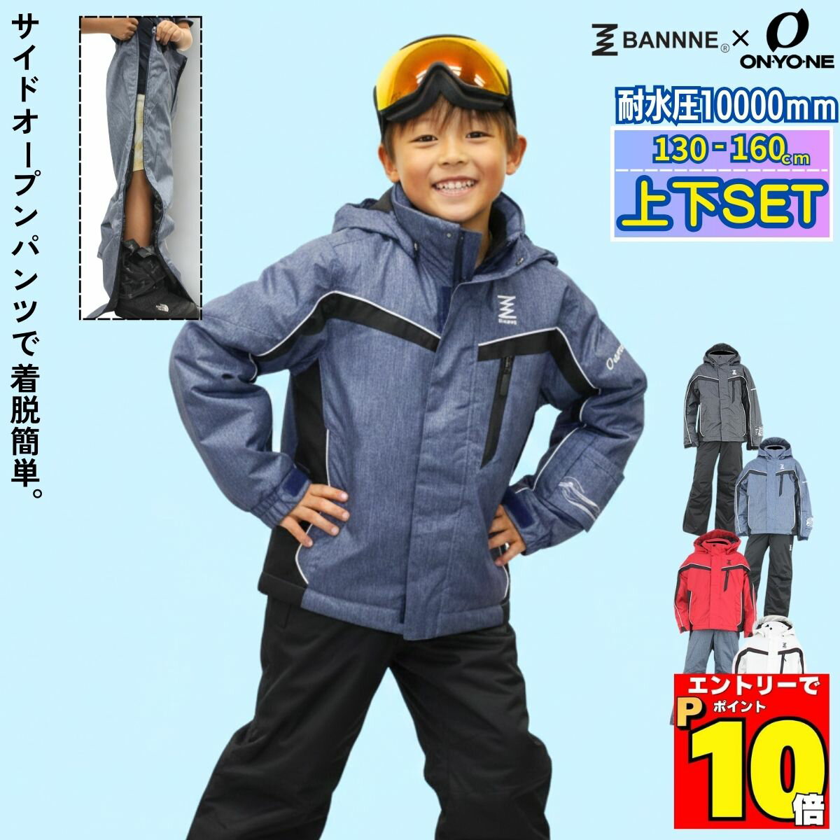 ジュニア スキーウェア 上下セット サイドオープンパンツ仕様 子供用 耐水圧10000mm BANN・・・