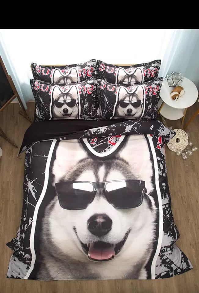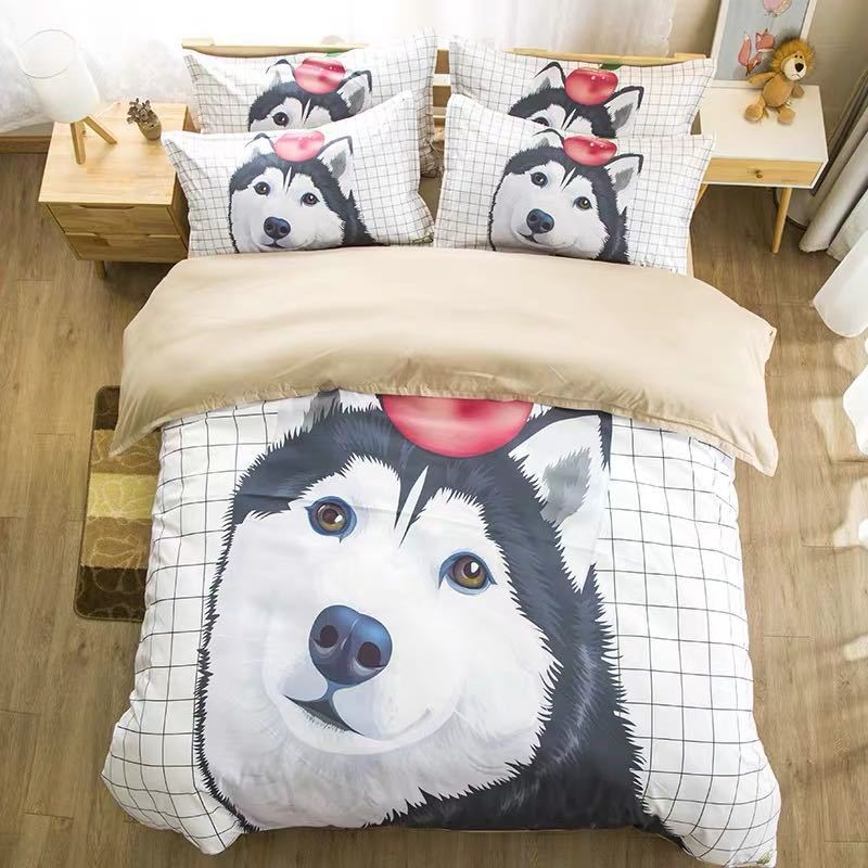 A042780ベッド用品4点セット掛け布団カバー 枕カバー ベッドパッド ワイドダブルサイズ ハスキ・・・