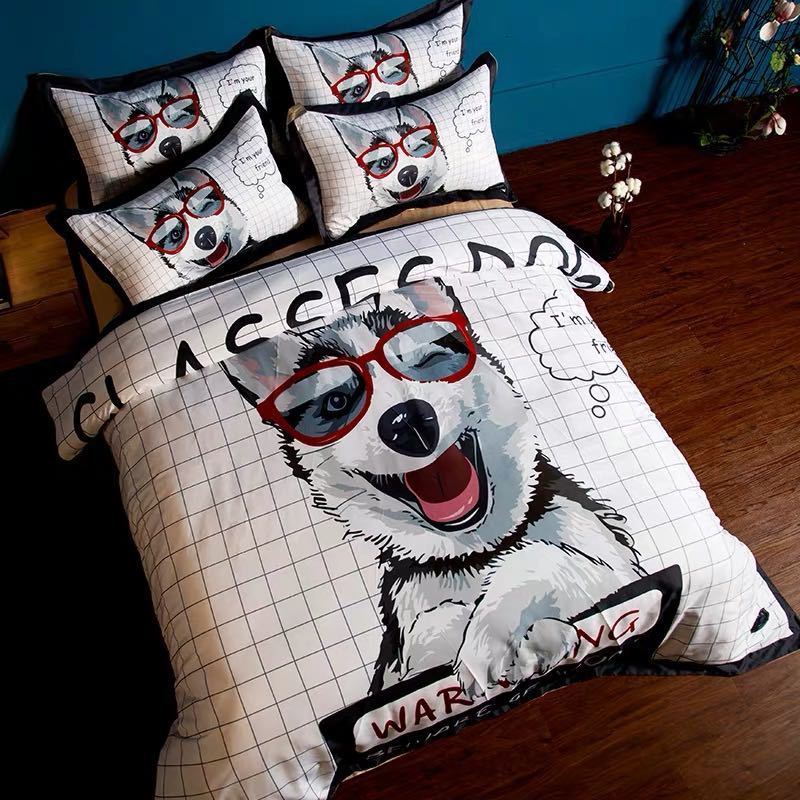 A035479ベッド用品4点セット掛け布団カバー 枕カバー ベッドパッド ワイドダブルサイズ ハスキ・・・