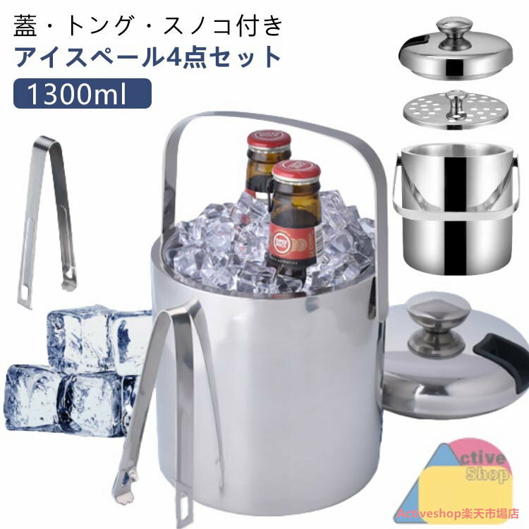 1.3L コンパクト 保冷 トング 二重構造 1.3リットル 4点セット ステンレス アイスペール ・・・