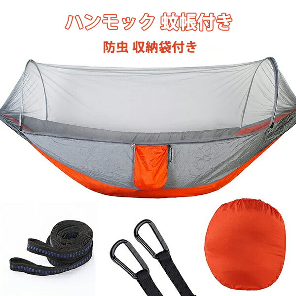 最新型 ハンモック モスキートネット付き 軽量 ポータブル ナイロン 耐荷重 300kg 自動蚊帳設・・・