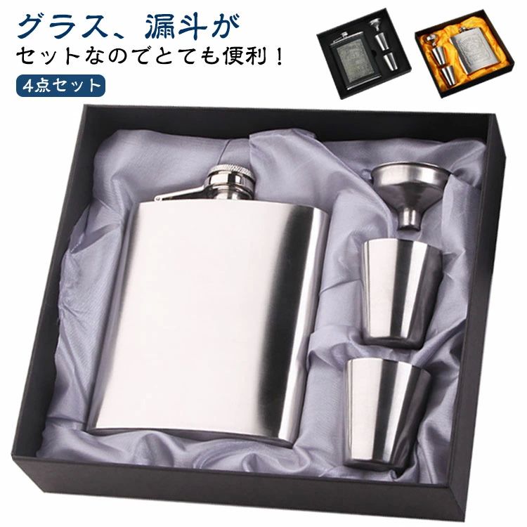 スキットルボトルプレゼントウイスキーボトル7オンスセット小型水筒コップ付き日本酒ウイスキー漏斗付き4・・・