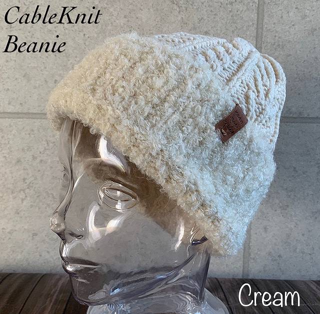 ● 2色展開 特価 ニット帽 ボア ケーブル ワッチ 異素材 レザー ビーニー 男女兼用 秋冬 メン・・・