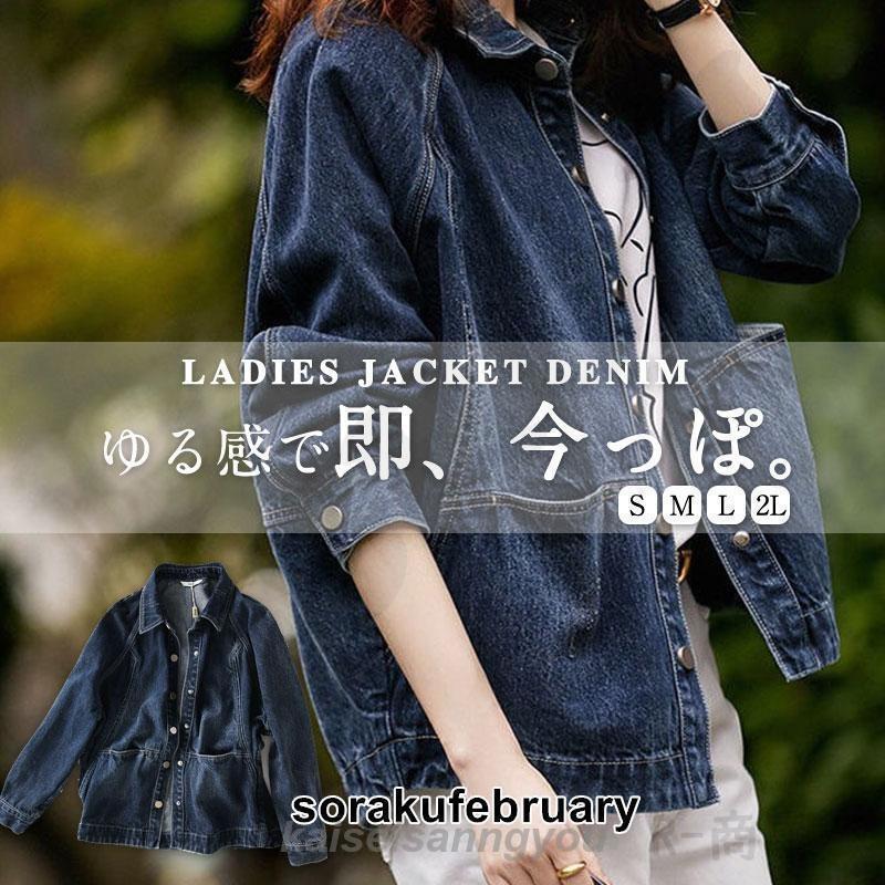 デニムジャケット レディース 50代 きれいめ 裾バルーン 大きめ アウター ジージャン デニム 綿・・・
