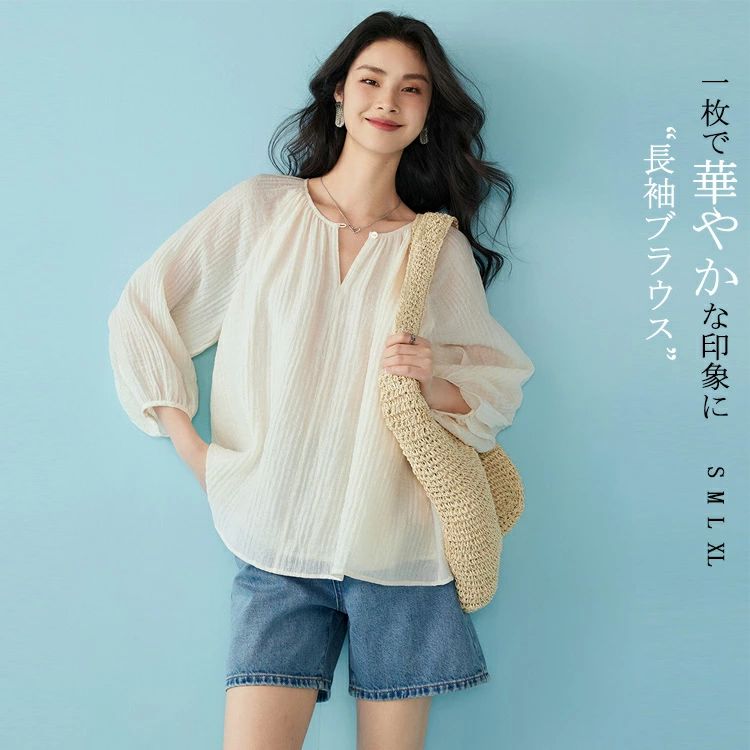ブラウス レディース キーネック 長袖 長袖ブラウス シャツ 長袖シャツ チュニック 春 夏 トップ・・・