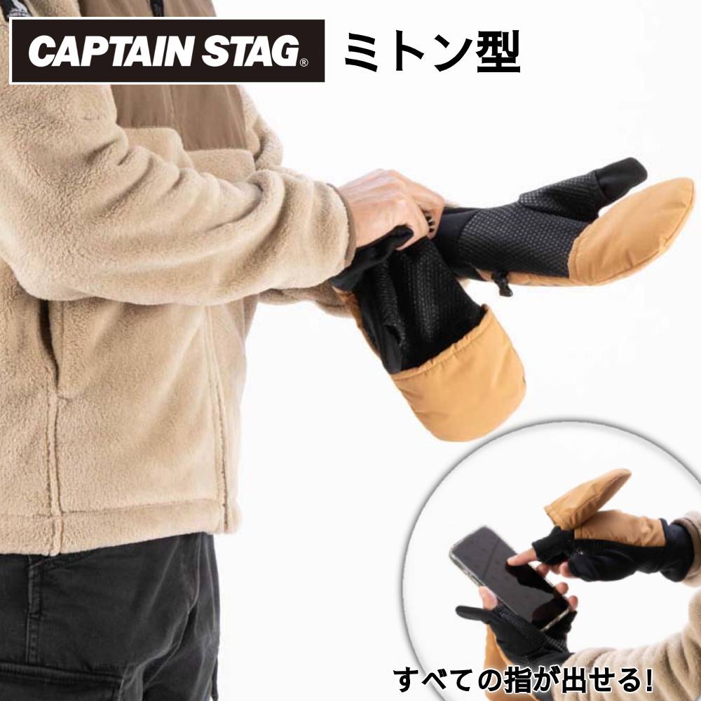 防風グローブ 手袋 キャプテンスタッグ 指なし ミトン 指出し スマホ対応 防水 防寒 防風 暖かい・・・