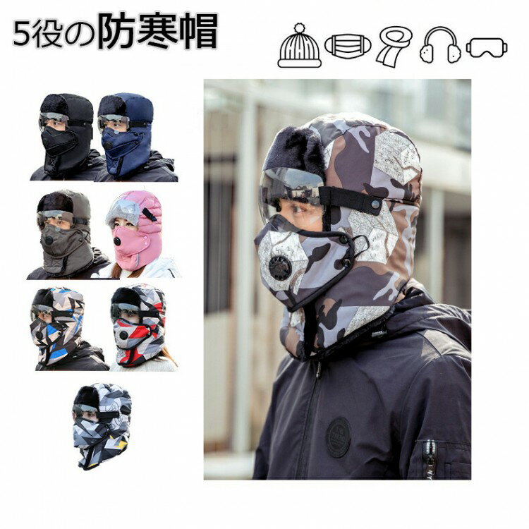 帽子 防寒 メンズ レディース 防寒帽子 飛行帽 ネックガード 防護ゴーグル イヤーマフ マスク 耳・・・