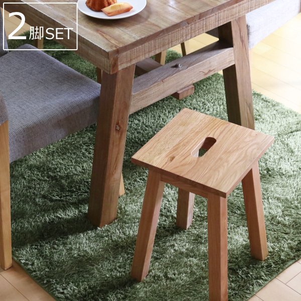 スツール 椅子 いす 木製 角型 天然木 オーク材 座面高46cm 完成品 2脚セット