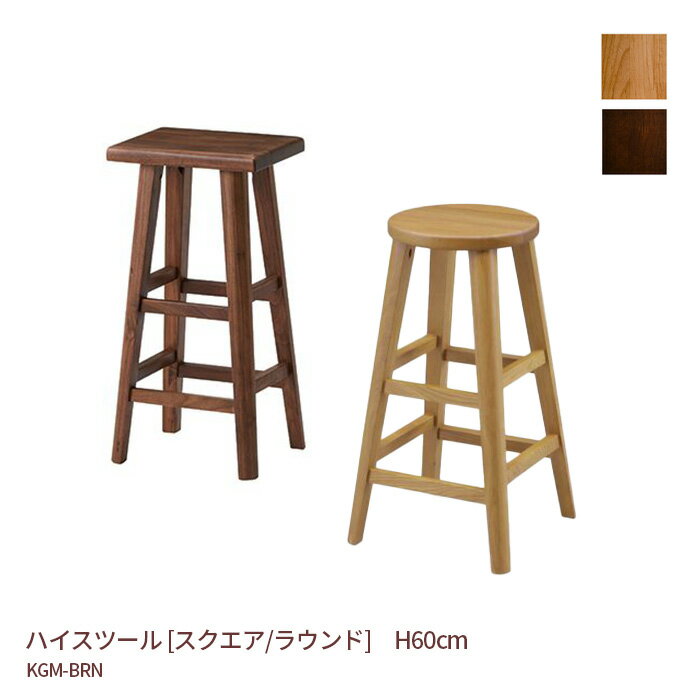 ハイスツール [スクエア/ラウンド] 椅子 KGM-BRN ウォールナット材 オーク材 書斎 天然木・・・