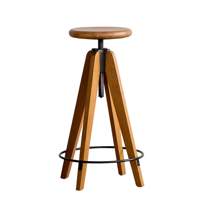 スツール ハイスツール 昇降式 回転 オーク材 おしゃれ 木製スツール カフェ風 アイアン インダス・・・