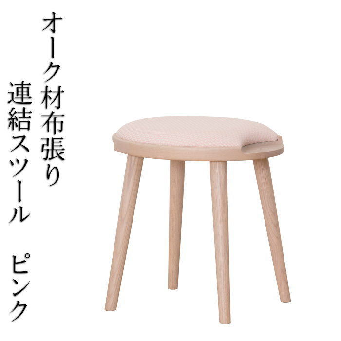上品なオーク材の布張り連結スツール ピンク 天然木 無垢材 木製 スツール キッチン用 スタッキング・・・
