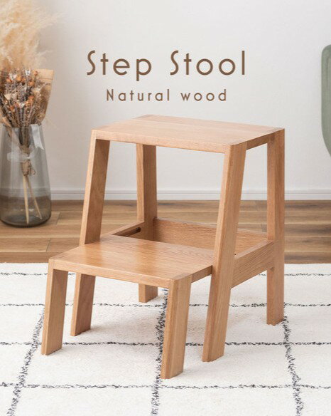 ステップスツール ステップ台 サイドテーブル オーク材 高さ45.5cm スライド式 天然木 省スペ・・・