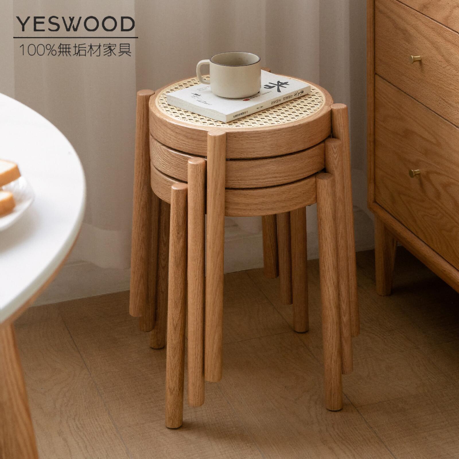 YESWOOD スツール 木製 ラタン編み 1脚 2脚 4脚 おしゃれ 北欧 チェア 32cm ウッ・・・