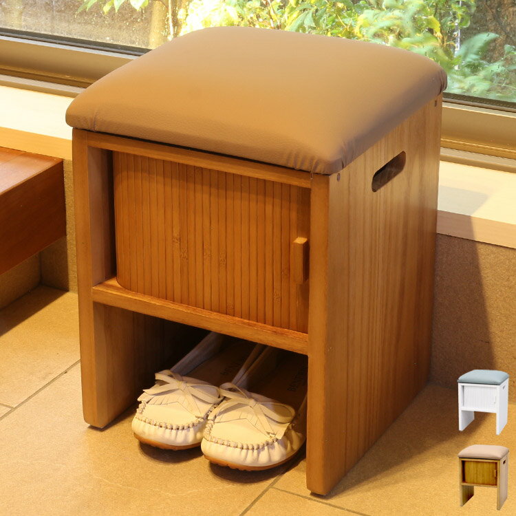 天然木 桐製 ジャバラ扉のスツールボックス 収納付き スツール オットマン 玄関 椅子 イス チェア・・・