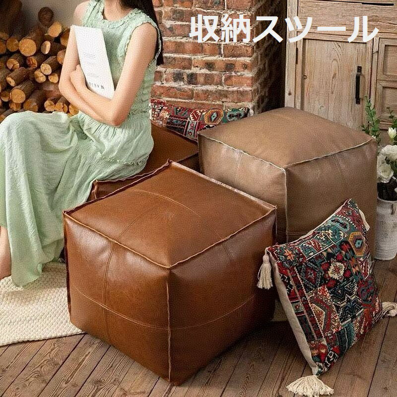 収納スツール スツール 収納付きオットマン 不要衣類収納 レザー製ローイスツール アンティーク調 お・・・