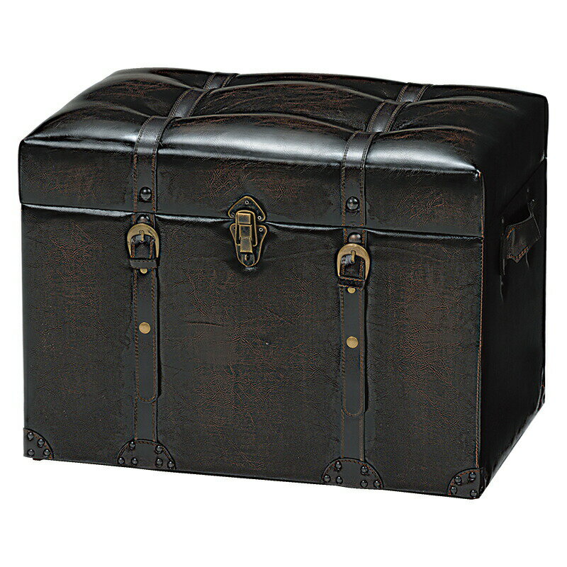 送料無料 スツール 収納 ボックス アンティーク トランク型収納スツール 合皮 オットマン レザー ・・・