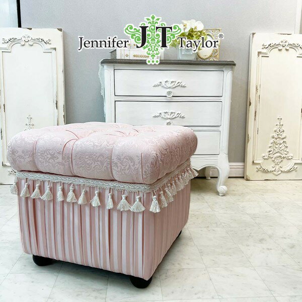 収納付きスツール 収納スツール スツール オットマン 椅子 ダマスク柄 ピンク ジェニファーテイラー・・・
