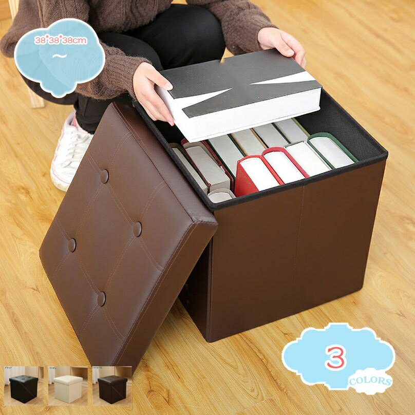 500円OFFクーポン スツール 収納スツール かわいい ワイド 折りたたみ PVC 四角 収納付き・・・