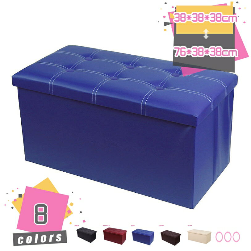 スツール 収納 ワイド 38×38cm ボックス 折りたたみ PVCレザー 折り畳み コンパクト レ・・・