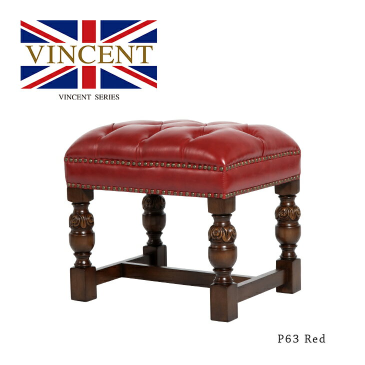 ヴィンセント アンティーク イス スツール オットマン ベンチ 椅子 いす 1人掛け レッド 合皮 ・・・