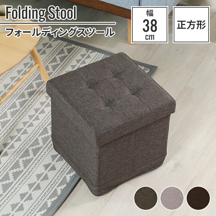収納スツール 折りたたみ 幅38×奥行38×高さ40cm ベージュ オットマン 収納ボックス 耐荷重・・・