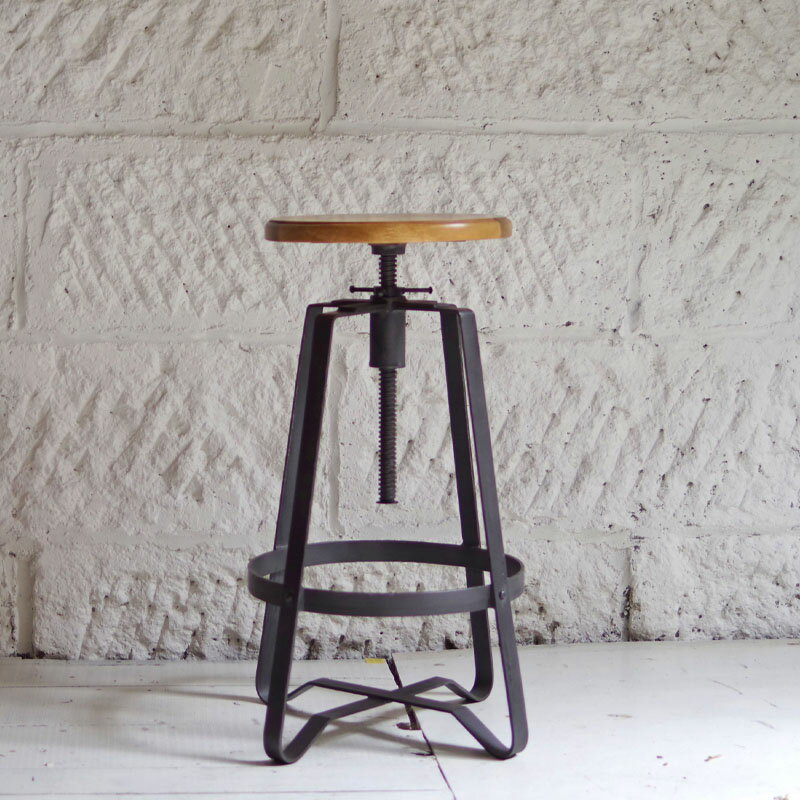 ハイスツール 木製 什器 インダストリアル家具 チェア 回転昇降式 アイアンハイスツール 椅子 円形・・・
