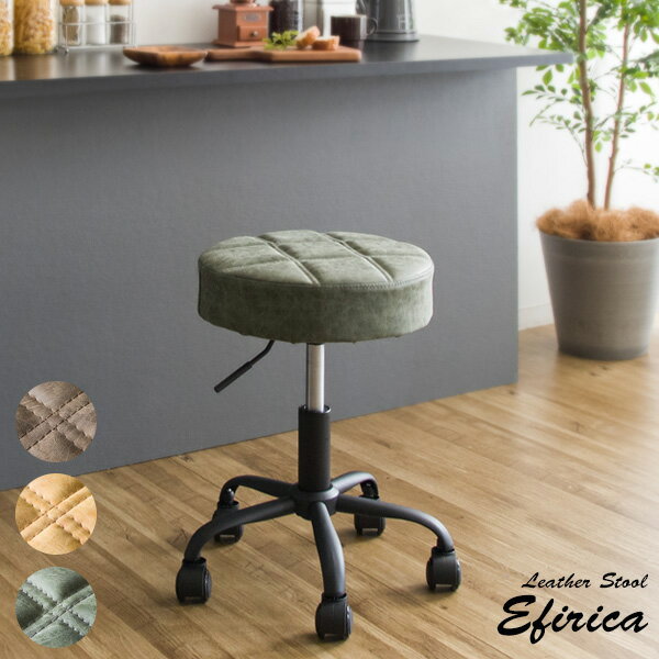 昇降スツール 回転座面 ラウンドデザイン キャスター付 キルティング リビングスツール 玄関スツール・・・
