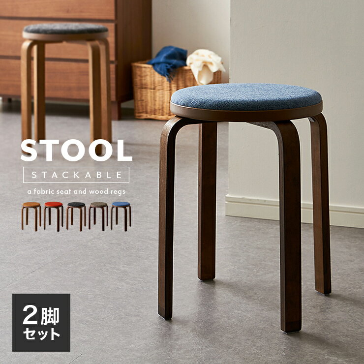 スツール 木製 スタッキングスツール 同色2脚セット ファブリック 曲木 省スペース スタッキング ・・・