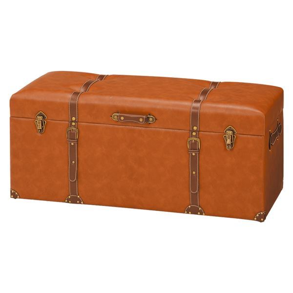 収納付き オットマン 幅102cm ライトブラウン トランク型 合皮 チェスターシリーズ ボックスス・・・