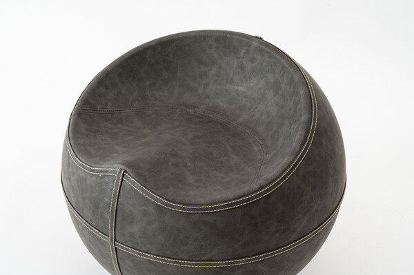 ソフトレザー 球体スツール グレー 座面高さ35cm 丸 ラウンド ステッチ 合皮 おしゃれ モダン