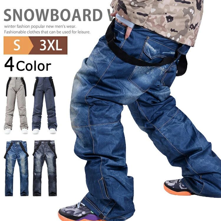 ス スノボ ボードウェア スノボウェア 単品 冬服 防風 防寒 ビブパンツ デニムパンツ スノボウェ・・・