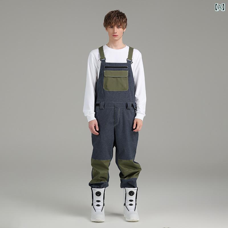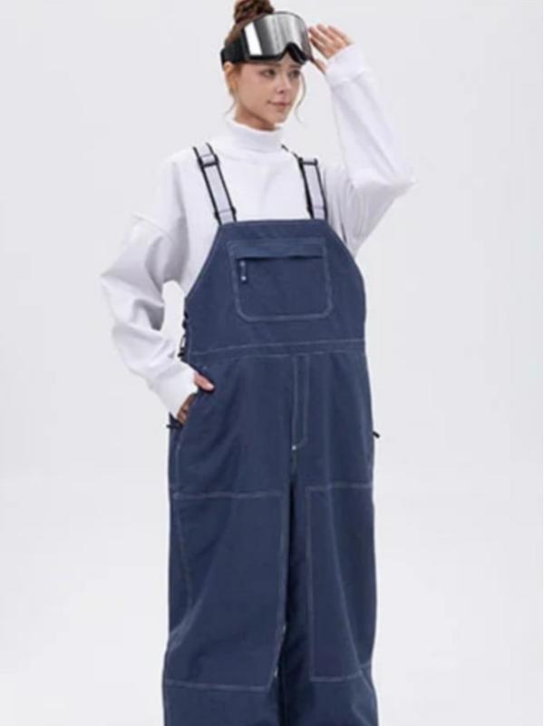 スキーウェアパンツ 男女兼用 SEARIPE スキー スノーボード ビブパンツ デニム オーバーオー・・・