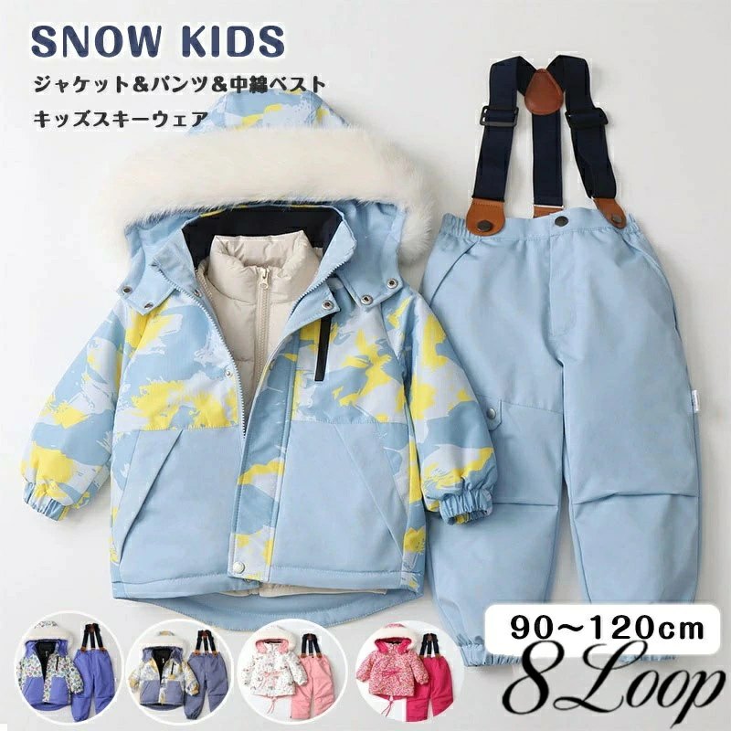 スキーウェア スノーボードウェア キッズ ベビー服 キッズ服 3点セット ジャケット 撥水 厚手 ゆ・・・