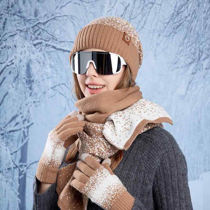 帽子 レディース 冬用 ニット帽 ネックウォーマー 手袋 3点セット 防寒 暖かい 厚手 裏起毛 自・・・