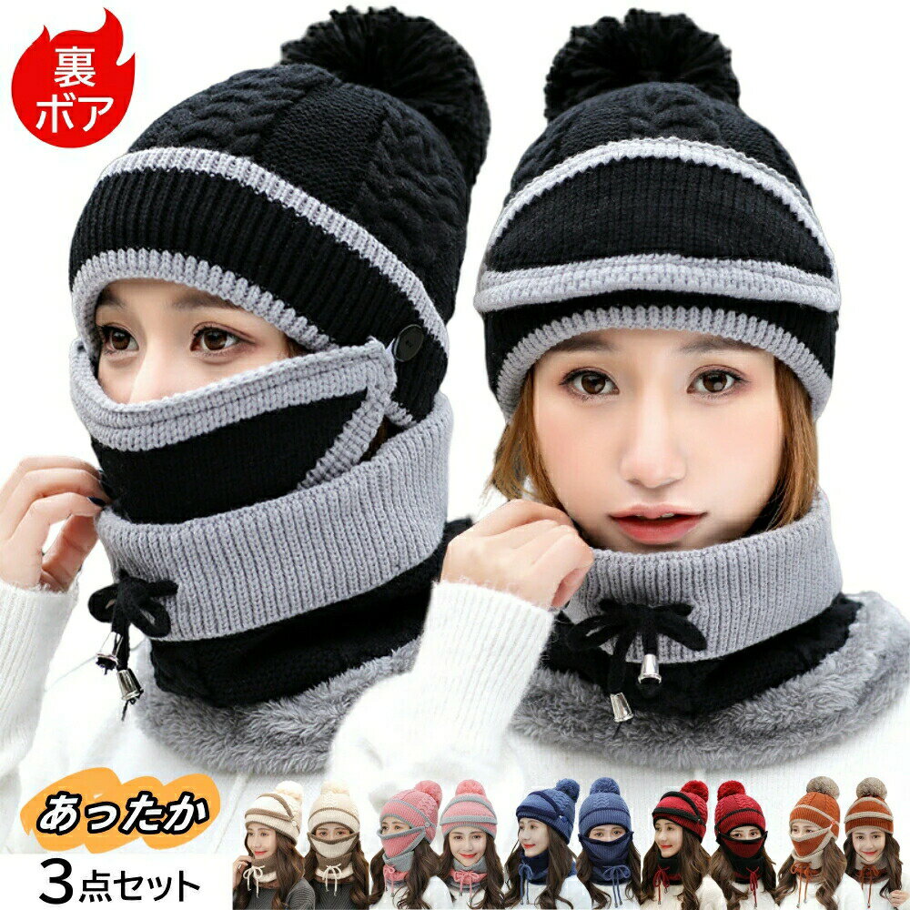 防寒 ニット帽 レディース 帽子 マフラー 耳あて フェイスマスク ネックウォーマー ニットキャップ・・・
