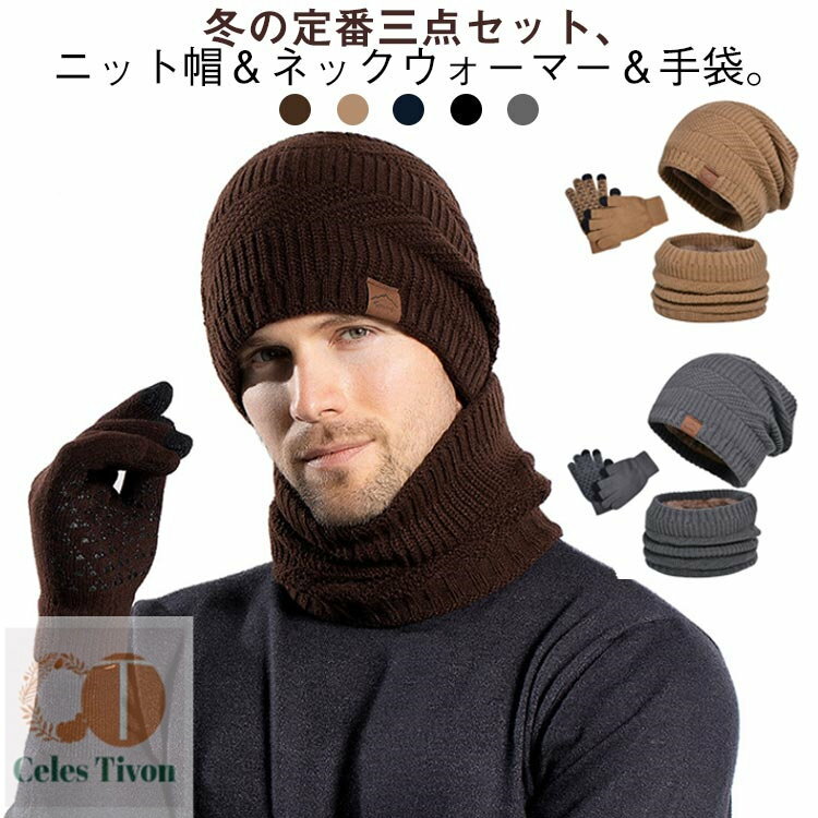 【送料無料】手袋 ニット帽 スヌード 冬用 秋冬 ネックウォーマー スノーボード 3点セット 帽子 ・・・