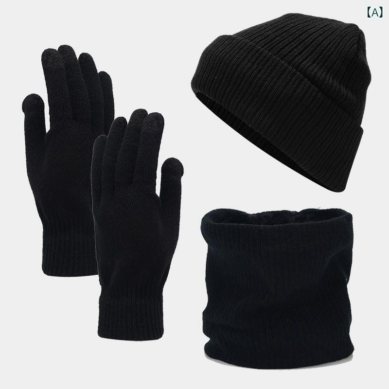 手袋ニット帽スヌード冬用秋冬ネックウォーマー厚手裏起毛暖かい柔らかいスノーボード3点セット帽子グロー・・・