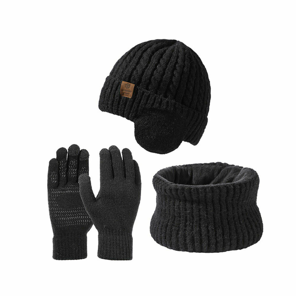 帽子 メンズ ネックウォーマー 手袋 3点セット 防寒 保温 ニット帽子 ニット 裏起毛 もこもこ ・・・
