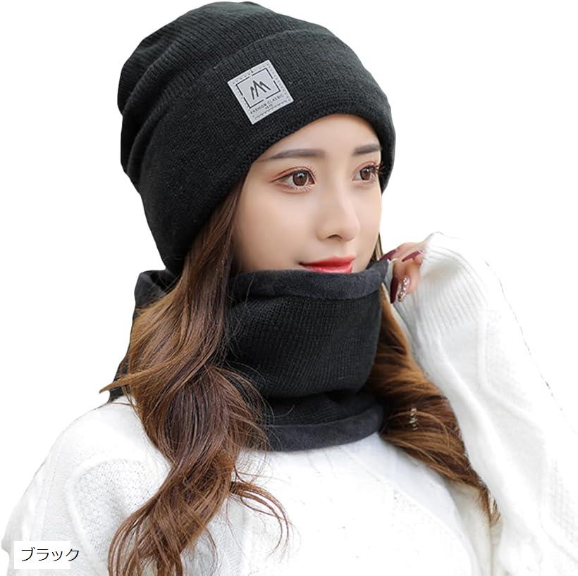 ニット帽 ネックウォーマー セット レディース 防寒 暖かい スノーボード 秋冬 ブラック (ブラッ・・・