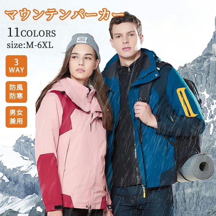 マウンテンパーカー 男女兼用 4WAY アウトドアウェア 防風 撥水 防寒 フリースインナー付き 取・・・
