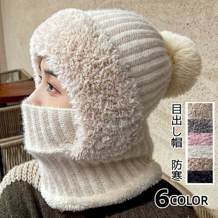 ニット 帽子 目出し帽 レディース フードウォーマー ボア 防寒フェイスマスク ふわふわ ニットキャ・・・