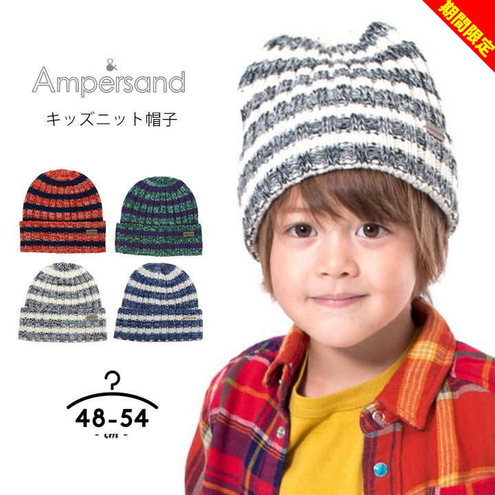【期間限定】アンパサンド ニット帽子 キッズ ベビー ボーダー無地 女の子 男の子 秋冬用 帽子 子・・・