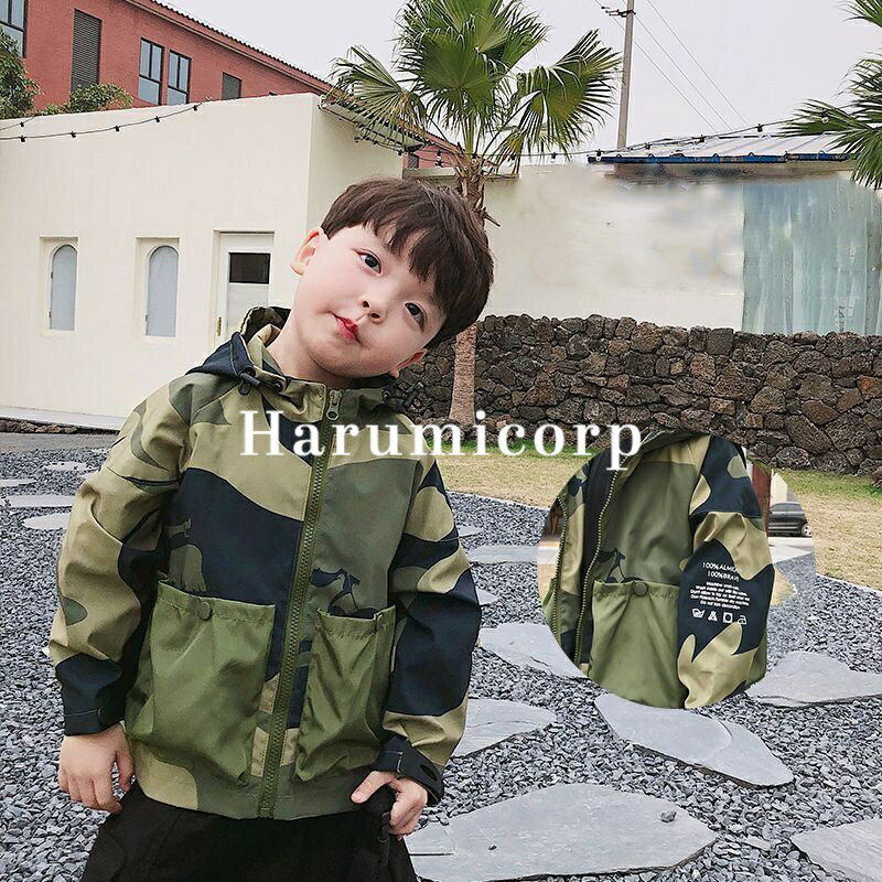 ジャケット キッズ 子供服 男の子 女の子 パーカー フード付き迷彩 ベビー服 コート アウター薄手・・・