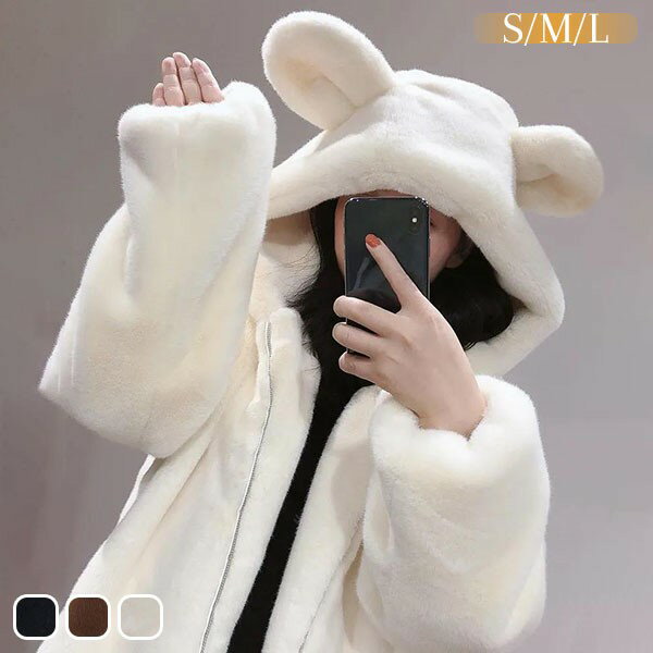 もこもこコート レディース 萌え萌え系 ボアコート クマ耳 中綿 フード付き かわいい あったかコー・・・