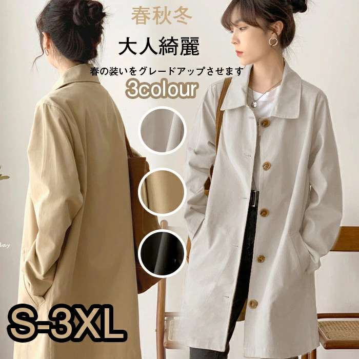 トレンチコート レディース スプリングコート 春 秋 ゆったり 薄手 コート ミディアム丈 大きいサ・・・