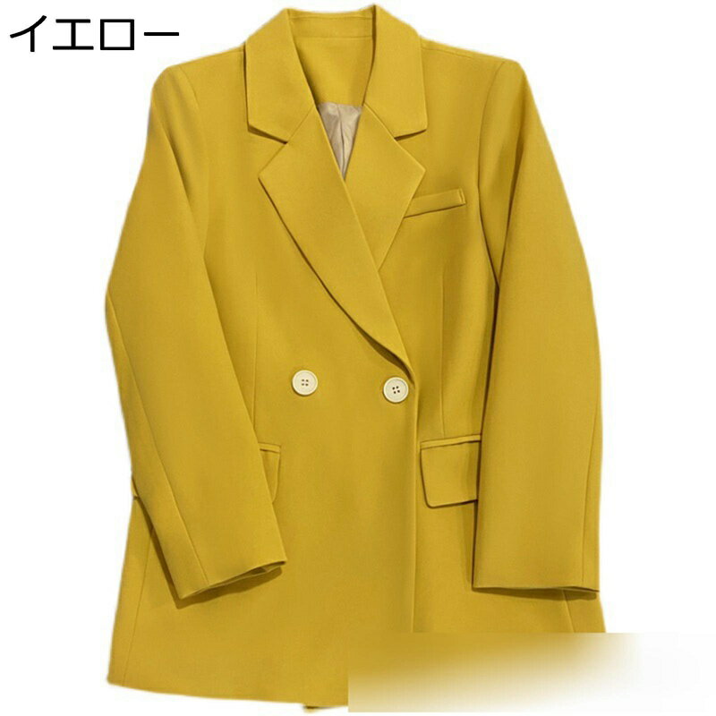 春秋 ブレザー テーラードジャケット レディース スーツジャケット イエロー 無地 スプリングコート・・・